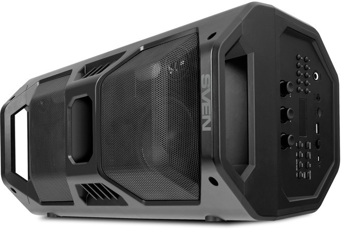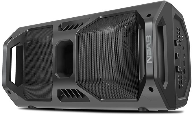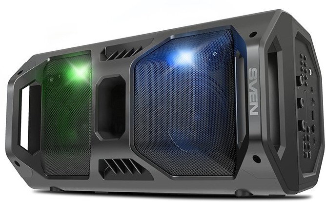 SVEN PS-600 Black, Bluetooth Portable Speaker, 50W RMS, Effective multi-colored lighting, LED display, FM tuner, USB & microSD, built-in lithium battery 2x4000 mAh, tracks control, AUX stereo input, Headset mode, micro USB or 5V DC power supply