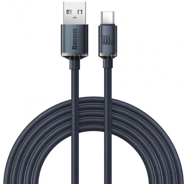 Cable USB - Type-C, Braided, 100W, 2m, Baseus Crystal Shine Black CAJY000501