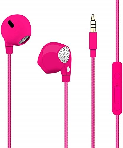 Puro IPHF21PNK Earphone Round Cable W/Spiral/But./Mic./Vol. Shock Pink