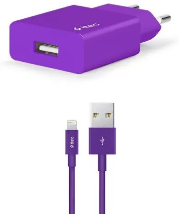 ttec Wall Charger Smart Travel with Cable USB to Lightning 2.4A (1.2m), Purple