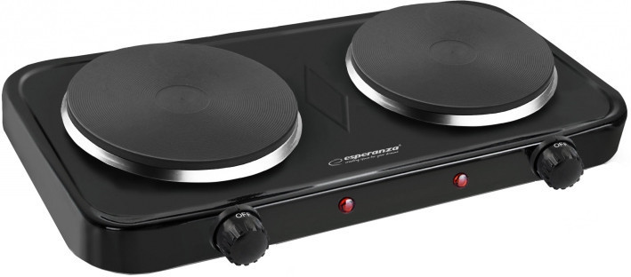 Electric Hot Plate Esperanza COTOPAXI EKH010K (EKH004K) Black, 2000W (1x1000W, 1x1000W), 5 temperature degrees thermostatic protection against overheating The indicator light (on / off) Heat-resistant surface materials 2 heating plates