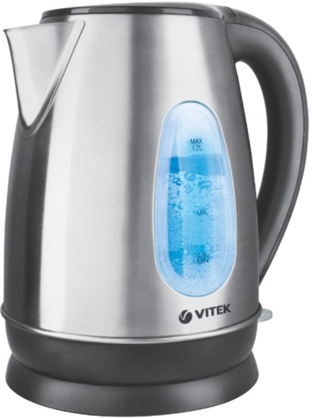 Электрочайник VITEK VT-7039, Stainless steel, 2200W, 1,7l, transparent water level indicator, concealed heating element, 360° swivel base, inox
