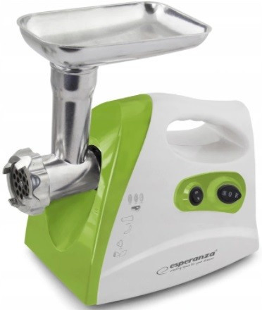 Мясорубка Esperanza MEATBALL EKM012G, White/Green, 600W stainless steel knife for long time use, metal spiral drive, 3 discs with different diameter holes (2,7mm, 4mm, 8mm), nozzle for making sausages, nozzle for making kebbe, gray