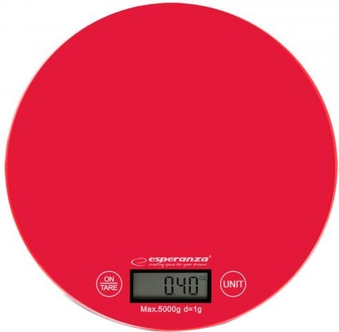 Весы кухонные Esperanza MANGO EKS003R Red Touch buttons, Maximum capacity: 5000g, Division: 1g, Four units of measure: g /lb/oz/kg, Tare Function, Overload indicator, Low battery indicator, Power: 1xCR2032 lithium battery