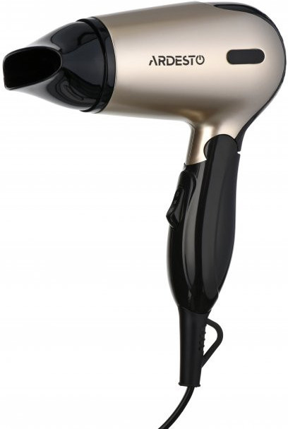 Descrierea Uscător de păr Ardesto HD-503T дорожный/1200 Вт/складная ручка/2 скорости/2 темпер. режима/золотисто-черный
