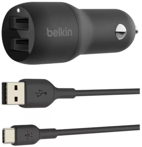 Belkin Car Charger 24W Dual USB-A, USB-A - USB-C, 1m, black
