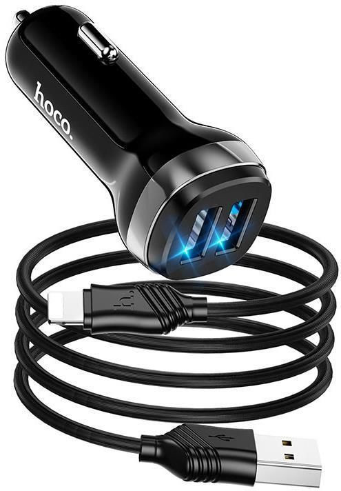 Hoco Car Charger 2xUSB with Lightning Cable Z40, Black