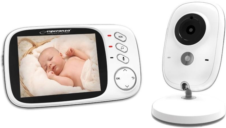 Baby monitor Esperanza JACOB EHM002, LCD 3.2", Range: 50m indoor, 260m outdoor, Automatic night vision, VOX function, Long battery life (up to 20 hours in VOX mode), Cable length of power adapter: 250 cm, 2 Power adapters, Multiple languages support (Eng