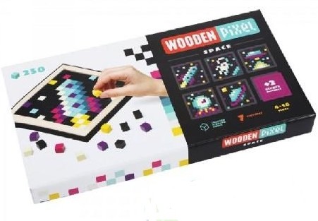 Деревянная мозаика позволяет из цветных деревянных кубиков-пикселей собрать 7 картинок с изображением тематики космоса.