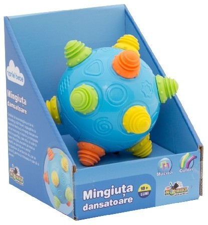 Тогда ждите сюрпризов!...Потому что у мяча есть моторчик внутри и мягкие пупырышки на поверхности, которые заставляют его прыгать во всех направлениях, танцуя под радостную музыку, которую сам издает!