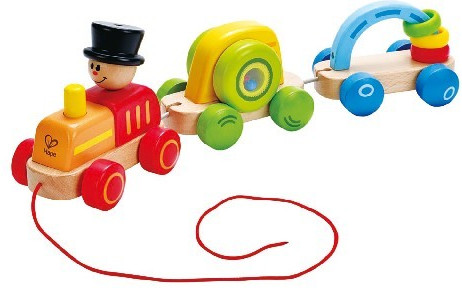 Очаровательный поезд на веревочке будет радовать малыша, и поднимать настроение.