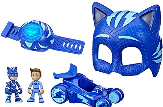 Fanii PJ Masks vor adora acest set de 5 piese tematic Catboy! Include o figurina Catboy ?i o figurina exclusiva a lui Connor purtand pijama pentru o aventura prietenoasa copiilor ?i sim?i?i-va ca unul dintre personajele din serialul TV de succes! Setul include de asemenea, o ma?ina care este conceputa pentru un personaj, o bra?ara care se aprinde ?i reda fraze ?i efecte sonore atunci cand copiii apasa butonul amuletei sau i?i mi?ca mana ?i o masca Catboy durabila ?i flexibila, care are o perna de cauciuc ?i elastic. bentita pentru ca micii eroi sa o poarte confortabil in timpul celor mai importante misiuni!