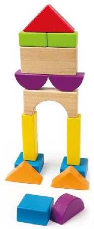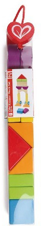 Набор кубиков Город Hape состоит из 15 деревянных блоков различной формы и цвета для стоительства простых и сложных сооружений.