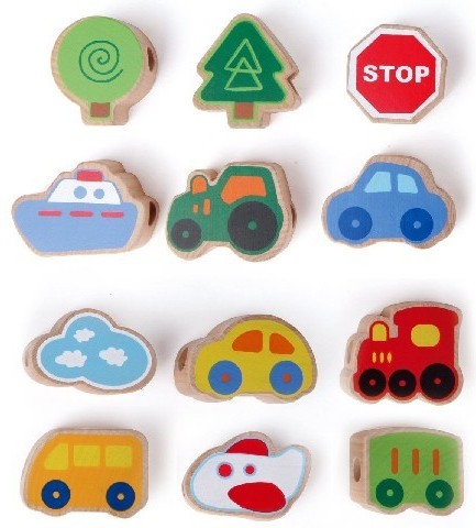 Шнуровка Транспорт Hape состоит из 12 элементов в виде транспорта и знаков дорожного движения.