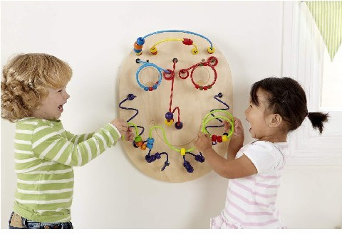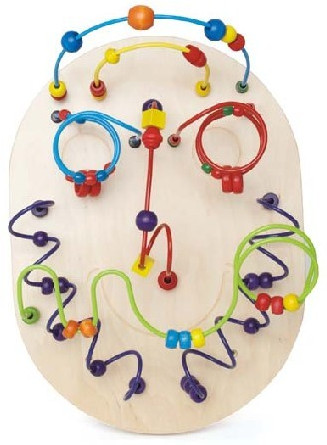 Эта настенная развивающая игрушка предлагает малышам повеселиться, вращая шестерни с различными рисунками и проводя разноцветные бусинки по проволочному треку.