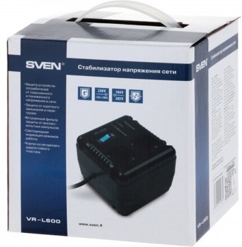 Sven VR-L600 – релейный стабилизатор, предназначенный для защиты газовых котлов и другого оборудования от импульсных помех и скачков напряжения в сети. В нём предусмотрено две розетки евростандарта, стабилизатор рассчитан на использование как дома, так и в офисе.