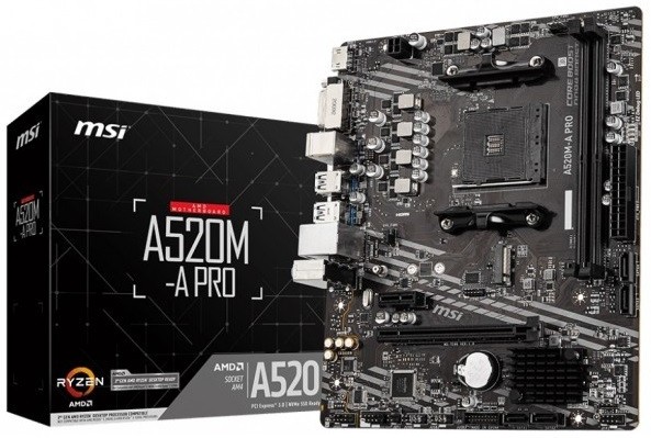 Материнская плата MSI A520M-A PRO, Socket AM4, AMD A520, Dual 2xDDR4-4600, APU AMD graphics, DVI, HDMI, 1xPCIe X16, 4xSATA3, RAID, 1xM.2 Slot, 1xPCIe X1, ALC892 HDA, GbE LAN, 6xUSB3.2 Gen 1, mATX