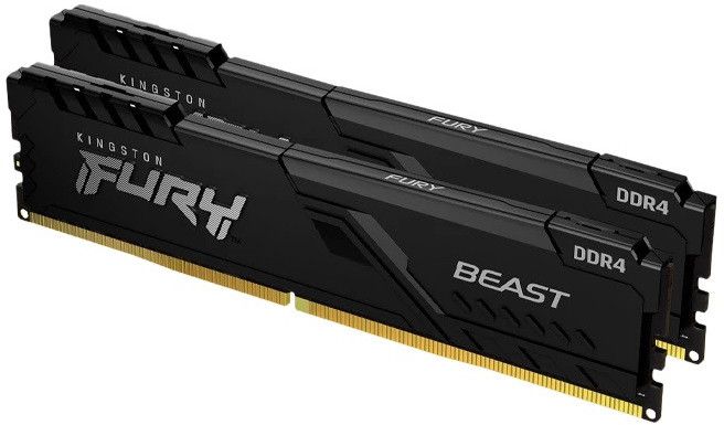 32GB (Kit of 2*16GB) DDR4-5600 Kingston FURY® Beast DDR4, PC44800, CL40, 1Gx8, 1.25V, Auto-overclocking, Asymmetric BLACK low-profile heat spreader, Intel XMP 3.0 Ready (Extreme Memory Profiles)