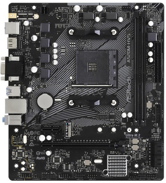 Материнская плата ASRock A520M-HVS, Socket AM4, AMD A520, Dual 2xDDR4-4733, APU AMD graphics, VGA, HDMI, 1xPCIe 3.0 X16, 1xPCIe 3.0 X1, 4xSATA3, RAID, 1xM.2, ALC887 HDA, GbE LAN, 4xUSB3.2 Gen1, 2xUSB2.0, mATX