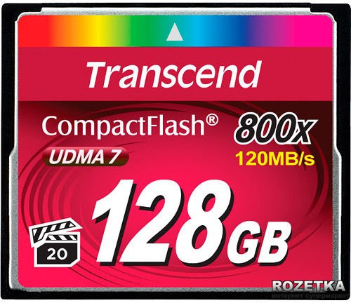 128GB CompactFlash Card, Hi-Speed 800X, Transcend "TS128GCF800" (R/W: 140/65MB/s)