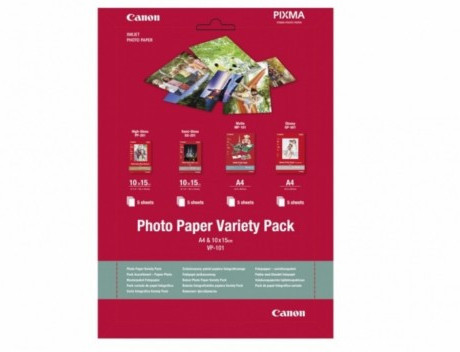 Paper Canon Variety Pack VP-101 (20sheets of 10x15cm), Contains (10sh glossy GP-501(1pcs), 5sh semi-glossy PP-201 (1pcs), 5sh high-gloss SG-201 (1pcs) )