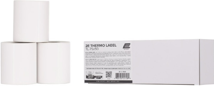Термоэтикетка 2E-TL-75X50 изготовлена из специальной термочувствительной бумаги. Под воздействием высокой температуры она темнеет, проявляясь в виде отпечатка буквы или цифры. Материал доступен и безопасен. Размер – 75?50 мм. Один рулон содержит 500 этикеток (в комплекте 3 рулона).