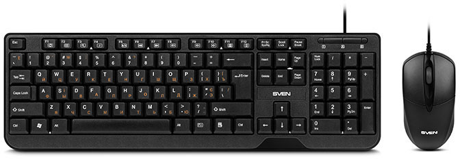 SVEN KB-S320C, Keyboard 104 keys + Mouse (Optical 800 dpi, 3+1 (scroll wheel)), Waterproof design, 1.5m, USB, Black
