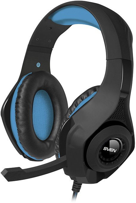SVEN AP-G887MV, Gaming Headphones with microphone, 3.5 mm (4 pin) or 2*3.5 mm (3 pin) stereo mini-jack (connector for PC), volume control on the cable, Non-tangling cable with fabric braid, Cable length: 2.2m, Black/Blue