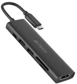 Docking Station A4Tech 6-IN-1, HDMI, 2xUSB 3.0, Type C, PD100W, SD/TF, Aluminum, Ash Grey