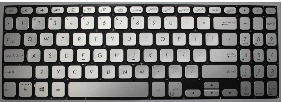 Keyboard Asus Vivobook S530 S530UA S530UN S5300 F512DA F512FA X530 w/Backlit w/o frame "ENTER"-small ENG/RU Silver Original.