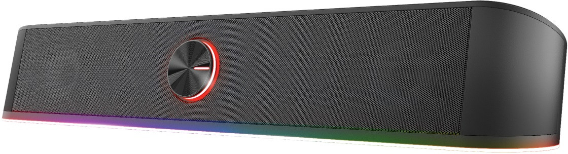 Trust Gaming GXT 619 Thorne RGB Illuminated Soundbar, 2.0 Stereo speakers with 12W of peak power provide a solid gaming experience, Black