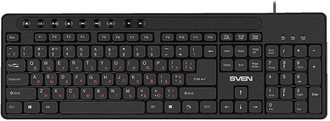 - Keyboard SVEN KB-E5700H, Slim, Low-pro?le keys, Island-style, Fn key, 2xUSB ports, Black, USBKeyboard SVEN KB-E5700H, Slim, Low-pro?le keys, Island-style, Fn key, 2xUSB ports, Black, USB Технология связи проводная Совместимость с ОС Windows Количество клавиш 104 Количество клавиш быстрого доступа 12 Контакты клавиш мембранные с тактильной обратной связью Интерфейс USB Наработка на отказ, нажатий свыше 20