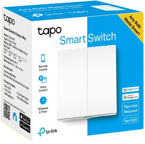 TP-Link Wireless Smart Light Switch Tapo S220, White, 2-Gang