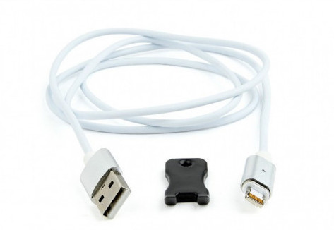 Cable 8-pin 1m - CC-USB2-AMLMM-1M, Magnetic USB 2.0 to 8-pin male connector cable, silver, 1 m