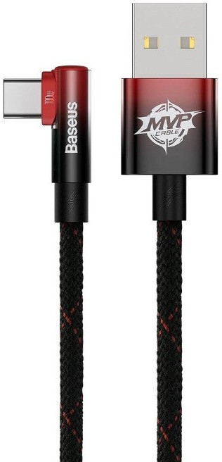 Cable USB - Type-C, Braided, 100W, 2m, 90°, Baseus MVP2 Black-Red CAVP000520