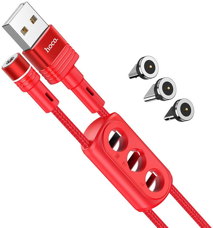 Описание HOCO U98 3-in-1 Sunway multi-functional magnetic charging cable(Lightning/Micro/Type-C) Red