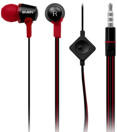 Earphones SVEN E-190M, Black, with Microphone, 4pin 3.5mm mini-jack, cable 1.2m