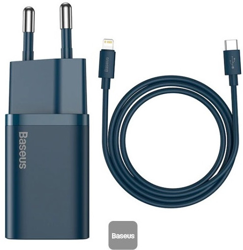 Baseus Super Si Quick Charger Type-C PD3.0 20W (With Baseus Cable Type-C to Lightning 1m), Blue
