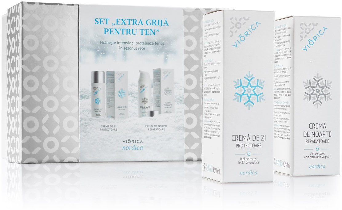 "VIORICA NORDICA" - o gama de produse pentru ingrijirea tenului, concepute special pentru sezonul rece. Compozita generoasa pe baza de ulei de cocos regenereaza si protejeaza pielea impotriva conditiilor climaterice nefavorabile si actiunii temperaturilor scazute.