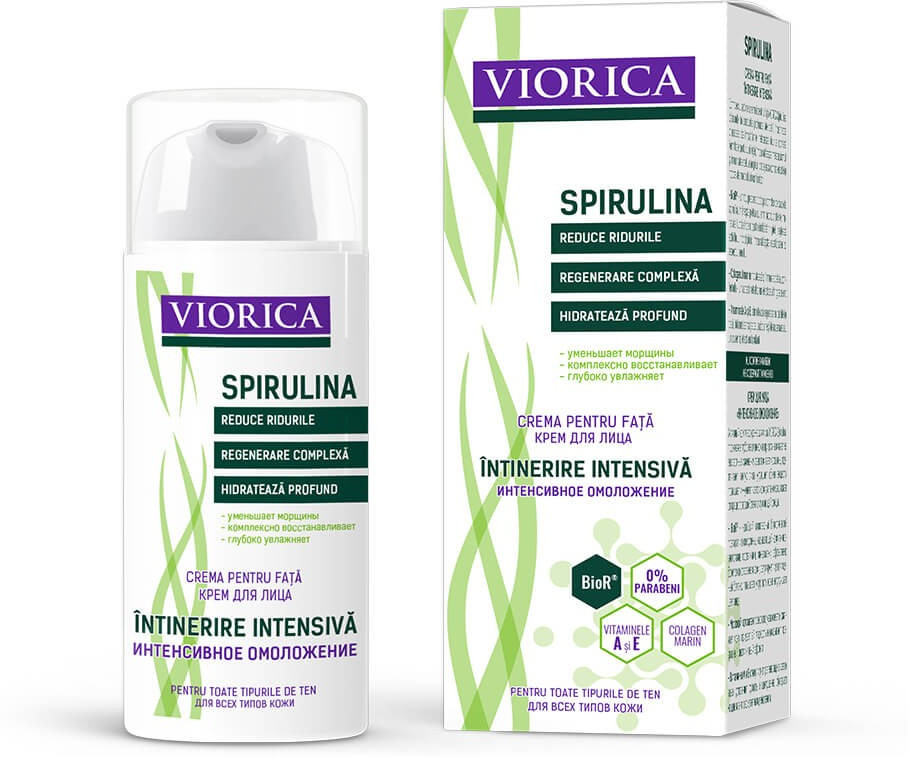 BioR® – un nou preparat biologic complex pe baza de spirulina, hraneste pielea cu aminoacizi, proteine, minerale, lupta eficient contra imbatranirii pielii, regleaza echilibrul hidrolipidic si imbunatateste elasticitatea.
