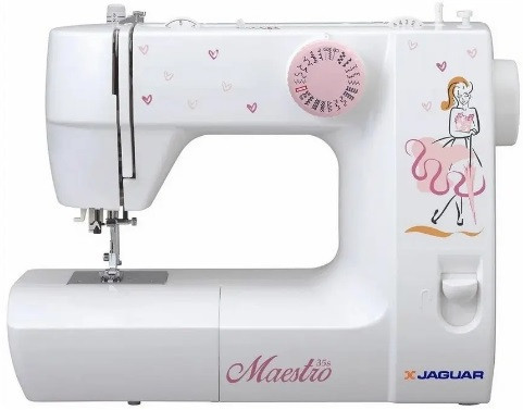 - Sewing Machine JAGUAR Maestro 35SSewing Machine JAGUAR Maestro 35S Управление: Электромеханическое Тип челнока: Вертикальный Мощность : 60 Вт Количество швейных программ: 25 Материал корпуса: Пластик Подсветка Реверс