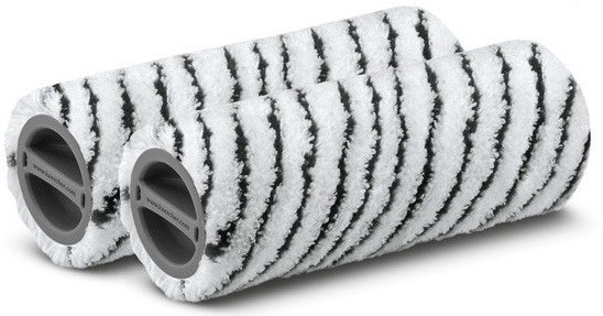 2 роликовые щетки из микроволокна для влажной уборки стойких загрязнений, в том числе из швов между плитками, с любых твердых покрытий с помощью аппаратов для влажной уборки пола серии FC. Допускается очистка в стиральной машине при температуре 60 градусов.