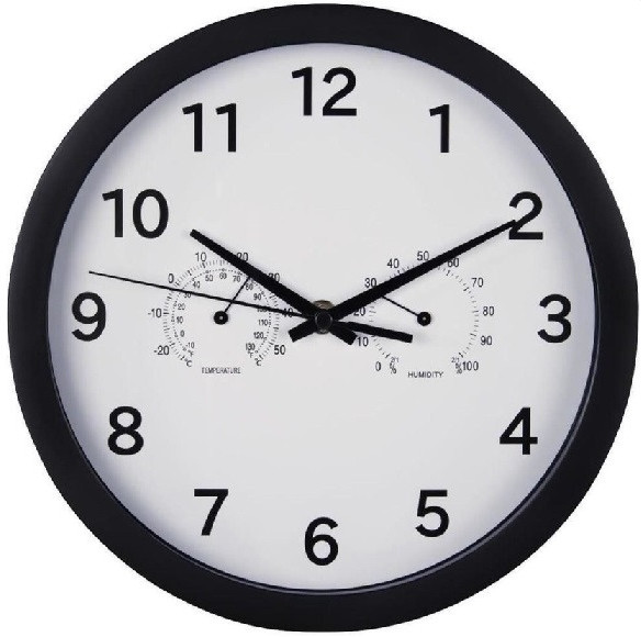 Hama 186342 "Pure Plus" Wall Clock, 25 cm, with Thermometer / Hygrometer, Quiet,black