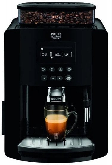 Кофеварка Krups EA817010, Power output 1450W, water tank capacity 1.7l, suitable for coffee beans and coffee powder, LED display, metal grinders, pump pressure 15 bar, black