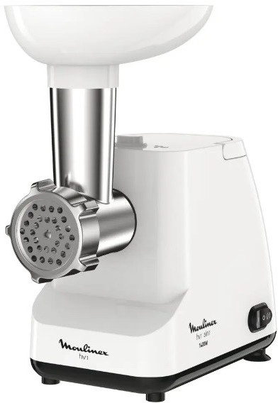 Мясорубка Moulinex ME111032, 1400W power output, 2 perforated discs , sausage and kebbe stuffers, grinding speed 1.7 kg/min, white