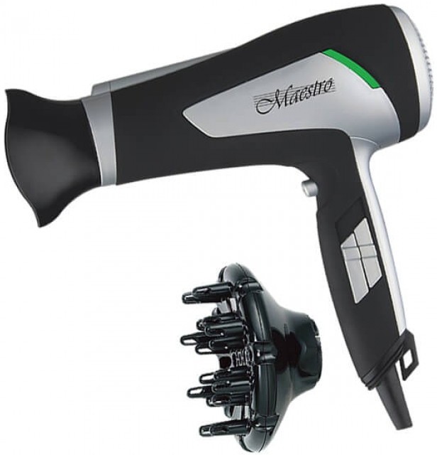 - Maestro MR-209Фен Maestro MR-209 Производитель: MAESTRO Мощность (Вт): 2000 Вт Цвет: Черный Тип: фен Количество режимов: 3 Количество режимов нагрева: 2 Подача холодного воздуха: Есть Ионизация: Есть