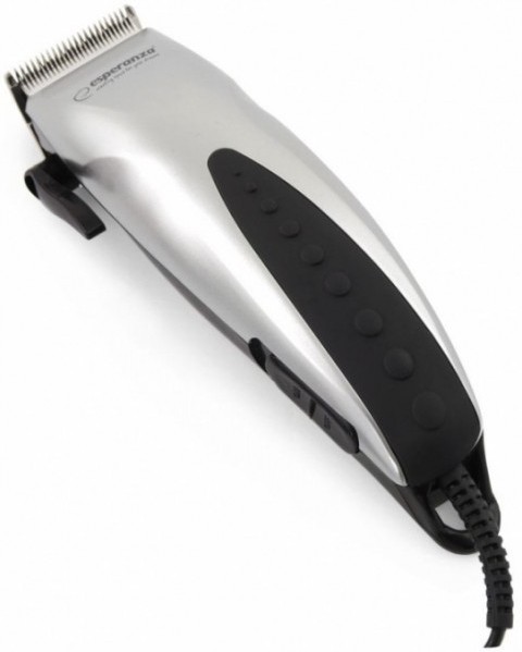 Hair Clipper Esperanza STYLIST EBC003 Silver-Black, Powerfull, Outstanding performance , High stability , Safe and reliable, 4 extra attachment combs, Oil for maintenance, Power: 10W