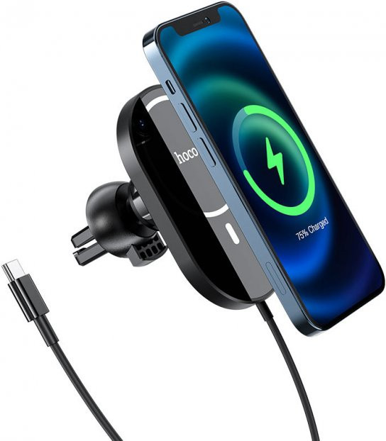 Описание HOCO CA90 Powerful magnetic wireless charging car holder Black