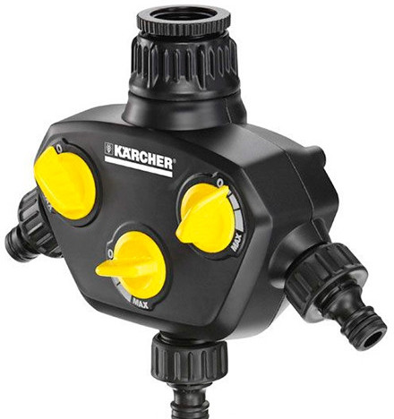 3 независимых выхода с плавной регулировкой расхода воды. Для присоединения к кранам с резьбой G1 и переходником G3/4. Обеспечивает орошение с одновременным использованием до 3 шлангов. Прочная латунная внутренняя резьба. С 3 штуцерами.