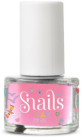 Snails Lac de unghii pentru copii "Pink Bang" 7 ml Formula bazata complet pe apa: se indeparteaza cu apa si sapun nefiind necesar solvent de unghii. Aplicati unul sau doua straturi din lacul de unghii pentru copii SNAILS Lasati trei minute intre doua aplicatii pentru a permite uscarea. 100% fabricate in Europa: lacurile de unghii SNAILS satisfac cele mai stricte cerinte legale. Fara toxine: SNAILS nu au substante chimice. Produsele cosmetice Snails pot fi reciclate. Odata deschis, utiliza?i in termen de 24 de luni. Varsta recomandata: de la 3 ani